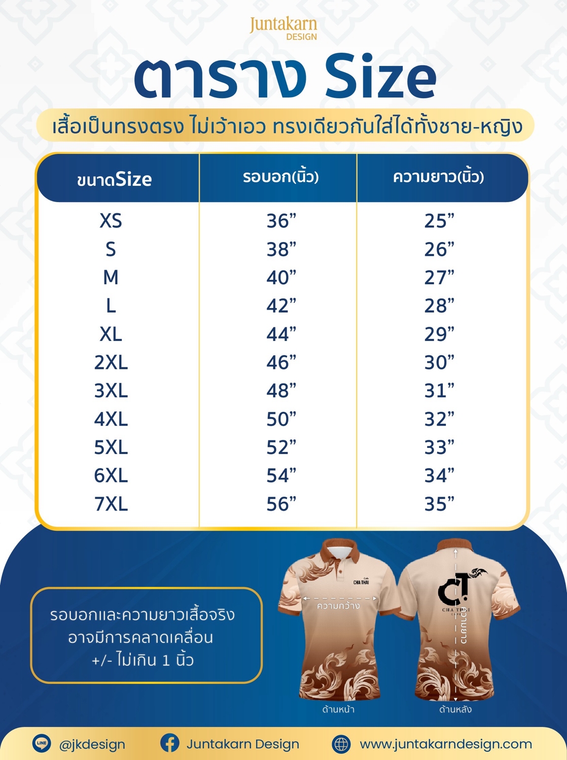 เพื่อความคล่องตัวในการสวมใส่ แนะนำเลือกขนาดใหญ่กว่าตารางไซซ์ 1 ไซซ์